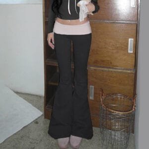 Price range: $18.68 through $19.23Color Matching Low Waist Casual Bootcut Trousers Women