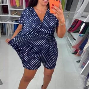 Polka Dot V-neck Short-sleeved One-piece Shorts
