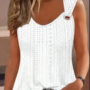 Eyelet Solid Tank Top, Casual Sleeveless Tank Top For Summer, Women’s Clothing