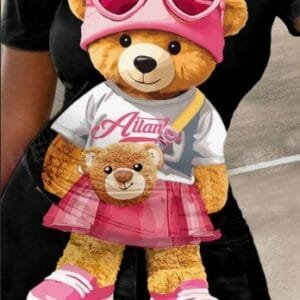 Casual Printed Cute Bear Pattern 2pcs Set For Women, Suitable For Summer