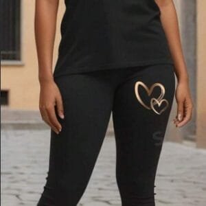 Women’s Heart Printed Short Sleeve T-Shirt And Leggings Set