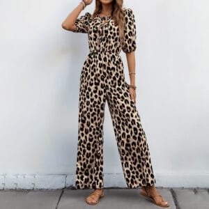 European And American Jumpsuit Tied High Waist Leopard Print One-piece Trousers